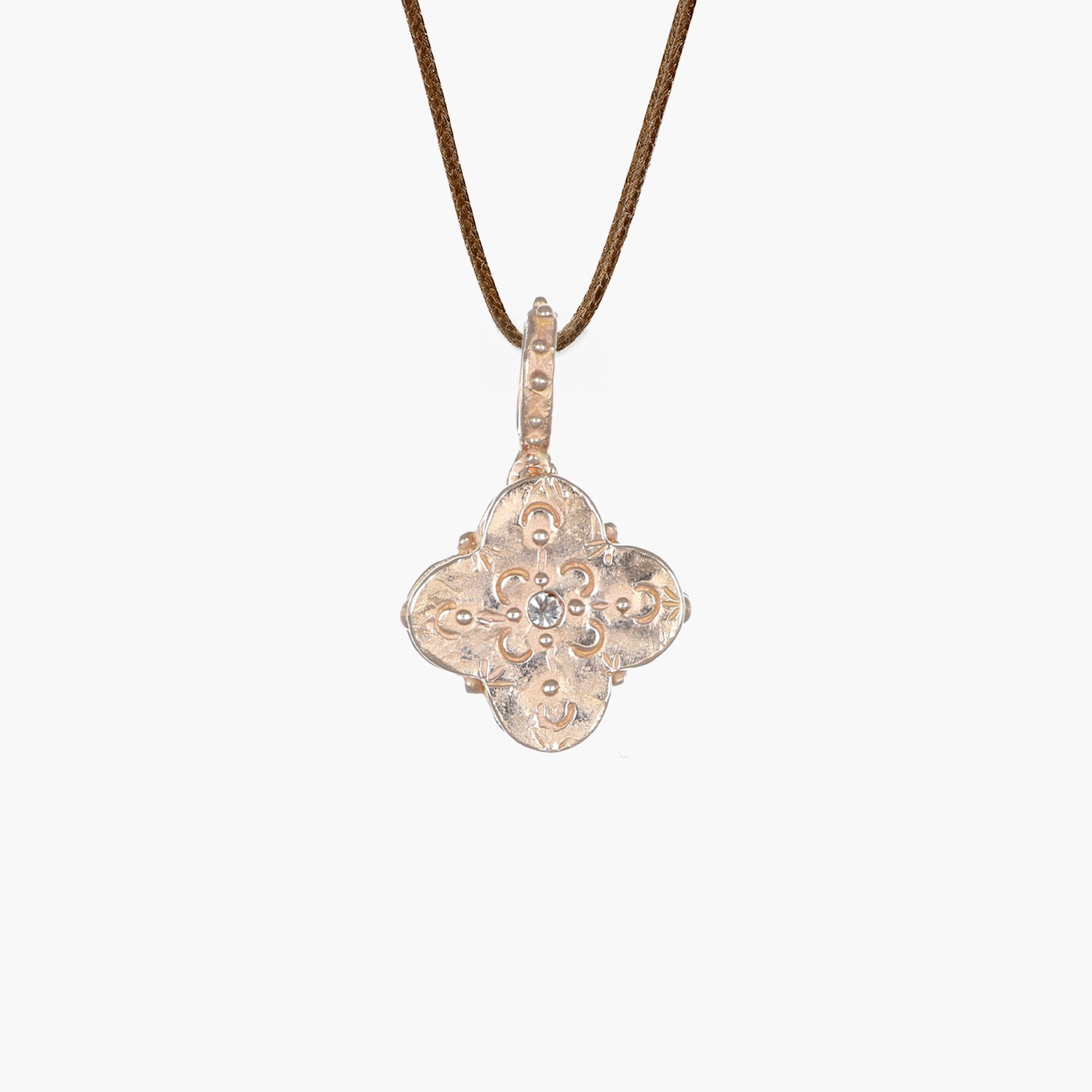 Questo pendente Quadrifoglio in oro rosa nasce come un gesto di cura, una presenza gentile che accompagna senza imporsi. Le sue forme morbide e avvolgenti sembrano modellate dalla luce del tramonto, quando tutto rallenta e i colori si fanno più caldi, più intimi.