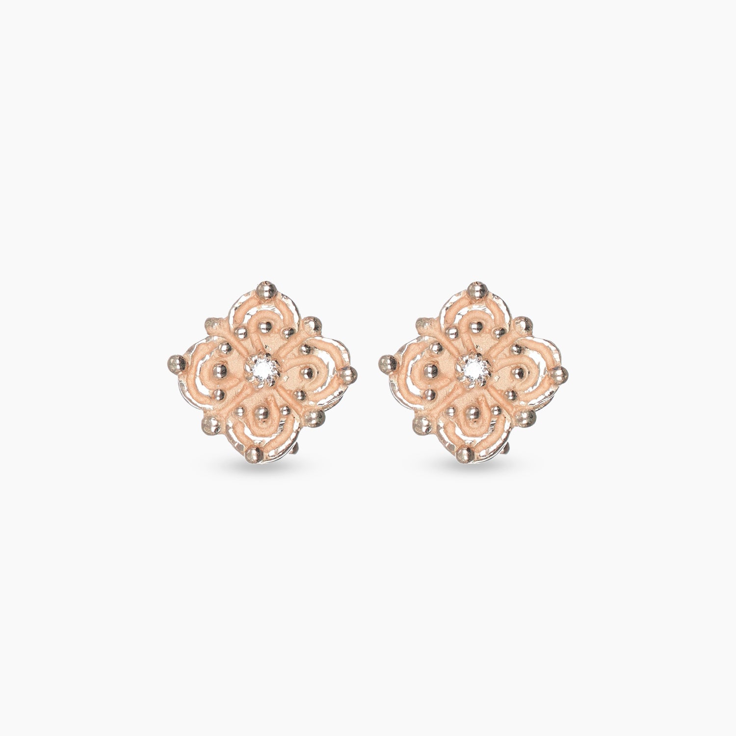 Questi orecchini quadrifoglio in oro rosa 18kt racchiudono un’idea di fortuna intima e personale, da portare ogni giorno come un piccolo segno di protezione. Le dimensioni contenute li rendono delicati, quasi confidenziali, mentre il disegno morbido e leggermente irregolare conserva il carattere artigianale che li rende unici.